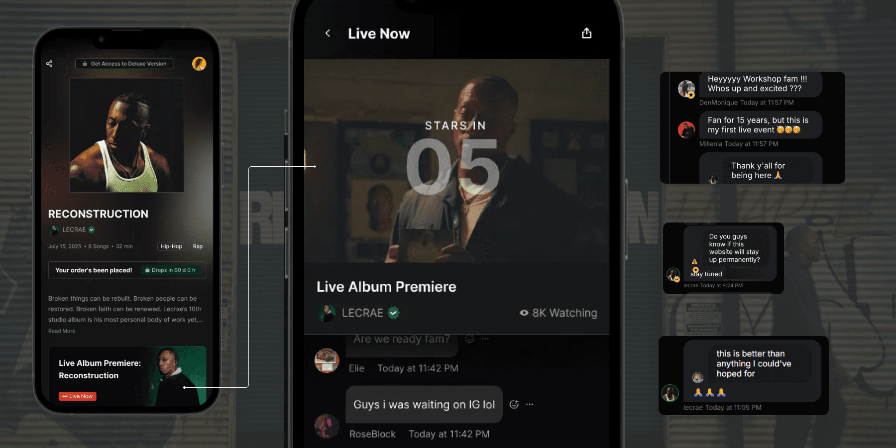 Create an experience that extended beyond a transactional moment. While early access to music served as the functional entry point, the deeper ambition was to generate momentum ahead of the DSP release, building hype, emotional investment, and a sense of insider proximity between artist and fans. We approached the experience as a shared cultural moment rather than a checkout flow, intentionally creating conditions for anticipation and community to emerge before the album launched publicly