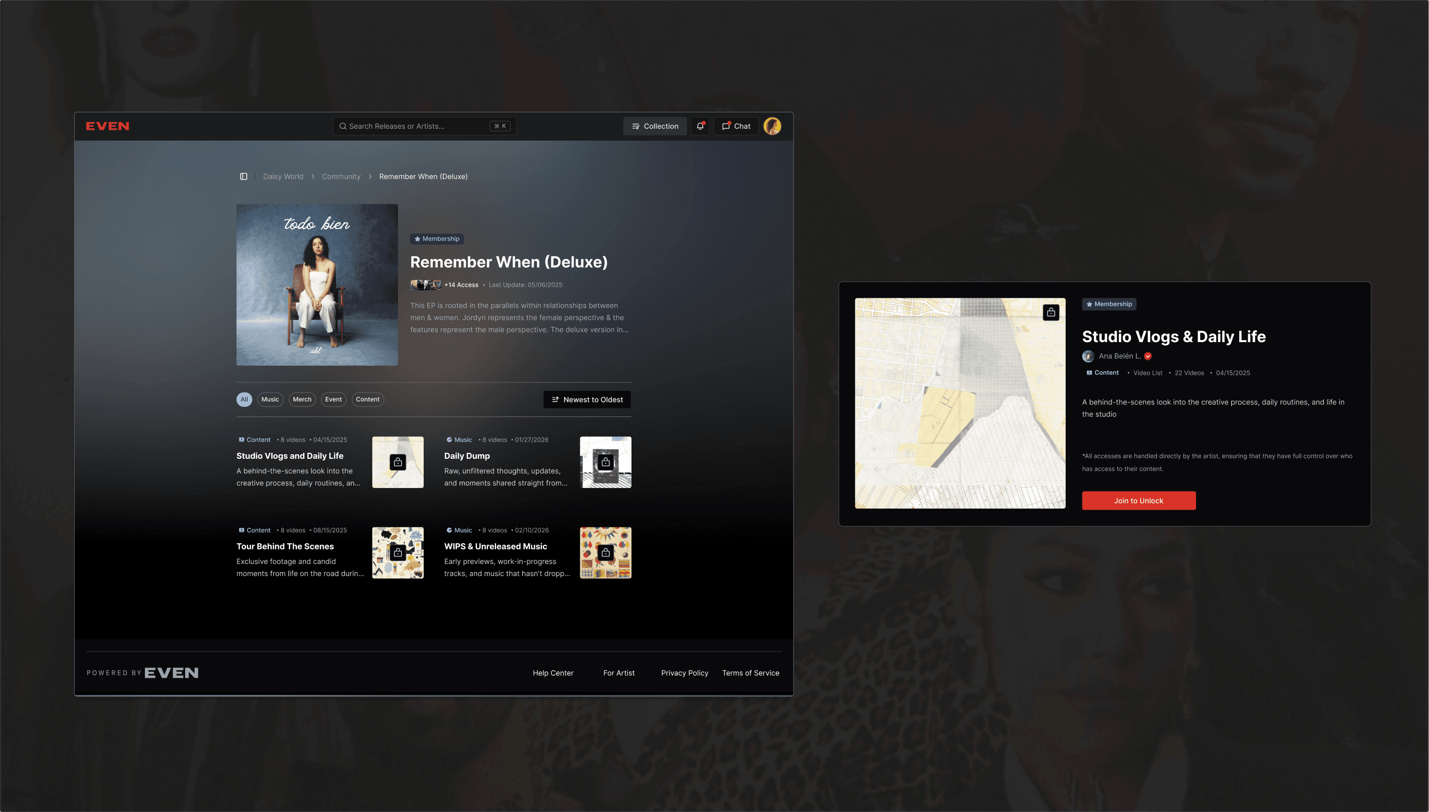 The Market Gap: Creator economy platforms like Patreon dominate subscription-based fan relationships, but music platforms remain stuck in transactional models. Artists on EVEN had loyal fanbases but no infrastructure to convert them into recurring supporters. The two-week Release window created churn: fans engaged briefly, then disappeared until the next drop. The Strategic Opportunity: EVEN had something Patreon didn't: deep integration with music releases and distribution. By adding membership, we could offer artists both immediate launch revenue (Releases) and long-term stability (recurring subscriptions), creating a hybrid model that captures the full fan journey from discovery to patronage. My Role: I led product design and acted as product lead for both Backstage (artist tools) and Fan Marketplace (fan experience). I owned strategy, user research, product definition, and design execution. I conducted discovery research, interviewed users, analyzed insights, and prioritized the roadmap. I led a team of 2 designers and partnered with 2 tech leads, dev, operations, and artist relations.